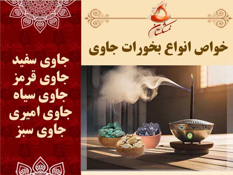 بخور جاوی شامل انواع متفاوتی از جمله : جاوی امبری – جاوی سرخ – جاوی سفید – جاوی سیاه – جاوس سبز می باشد.